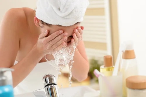 Some women believe water can dry out the skin, so they prefer to use tissue-off cleansers that do not need to be rinsed off with water. If you are one of these women, be sure to wash your face at least once every 10-14 days to unclog your pores and clarify the skin of any product build-up.